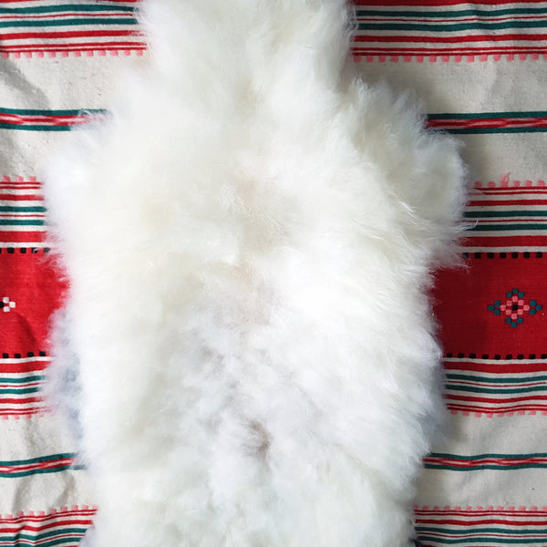 Eit av høgdepunkta i årets kolleksjon, silkemjukt og med eit utruleg vakkert fargespel i det kvite. Gyldne tonar glitrar mot deg i det rette lyset, og den lange, blanke pelsen er eit ekstra pent eksempel på den gamalnorske sauen sin eineståande ull.